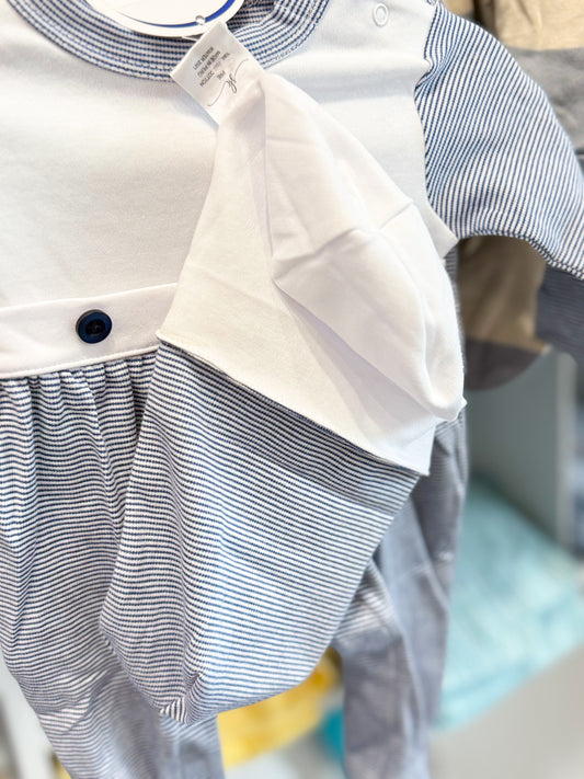 Infant Boys Navy Stripe Bib Front Footie and Hat