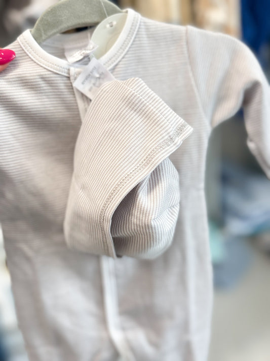 Infant Boys Silver Tiny Stripe Footie and Hat
