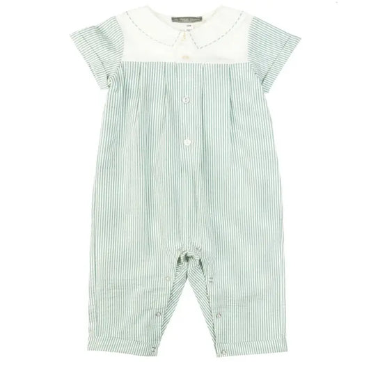 Baby Boys Green & White Stitched Collar Romper