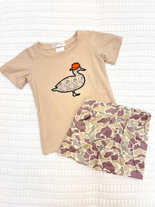 Baby Boy Safari Print Polo And Shorts Set - Mustard