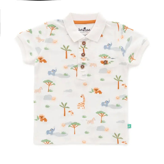 Baby Boy Safari Print Polo And Shorts Set - Mustard