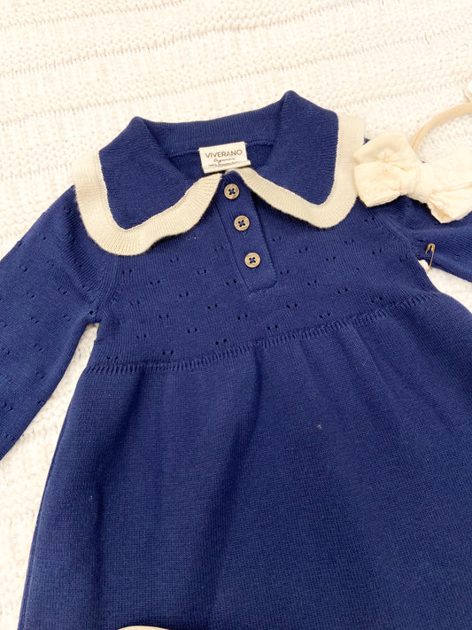 Infant Girls Adeline Ruffle Collar Sweater Knit Baby Dress