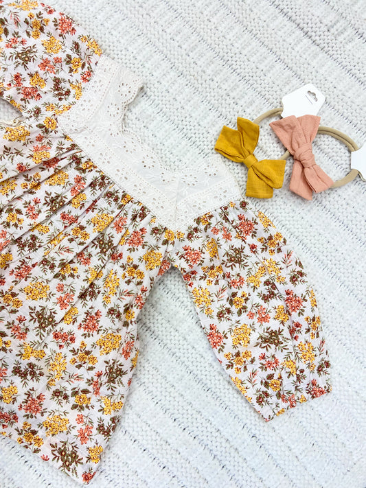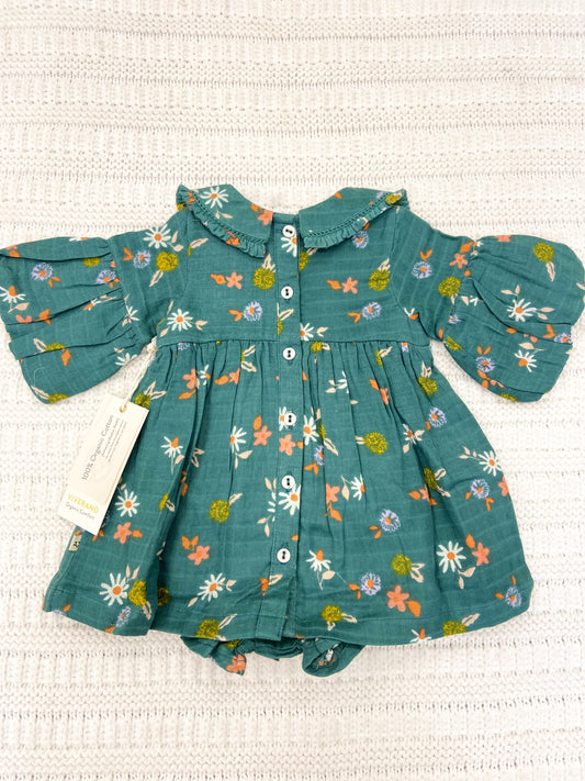 Infant Girls Collared Floral Dress & Bloomer Set