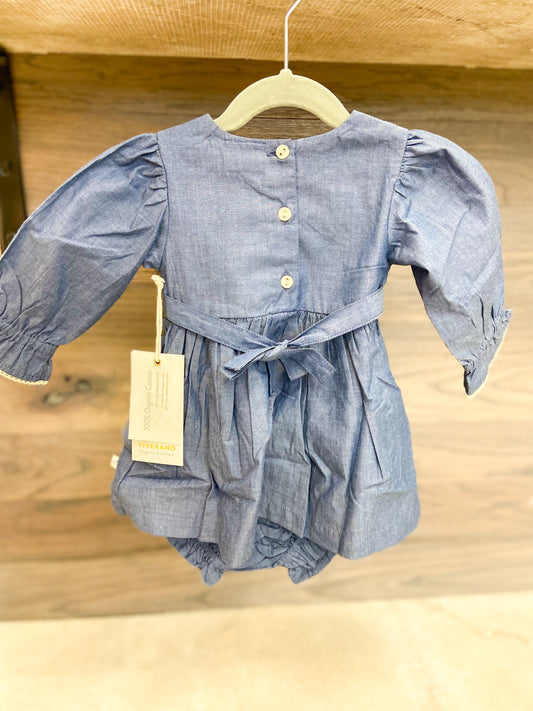 Infant Girls Soft Denim Embroidered Dress & Bloomer