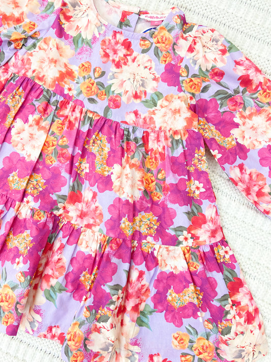 Toddler Girls Floral Woven Long Sleeve Tiered Dress
