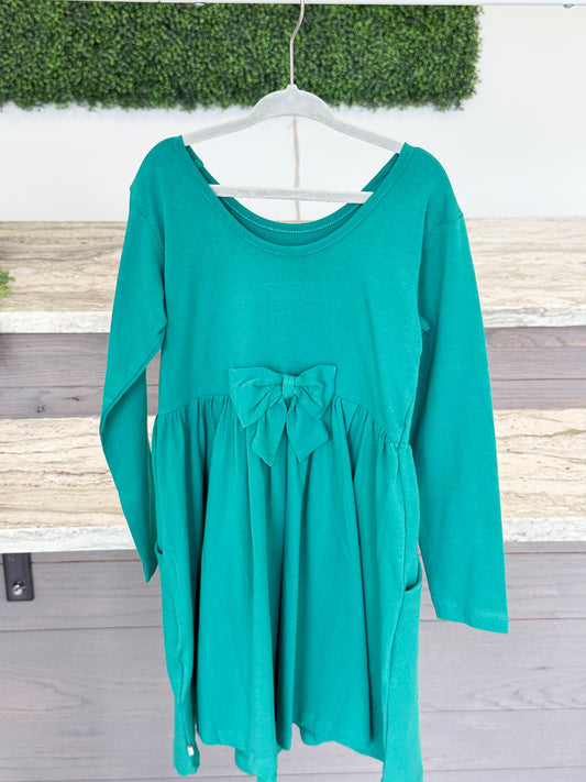 Toddler & Youth Girls Green Knit Long Sleeve Dress