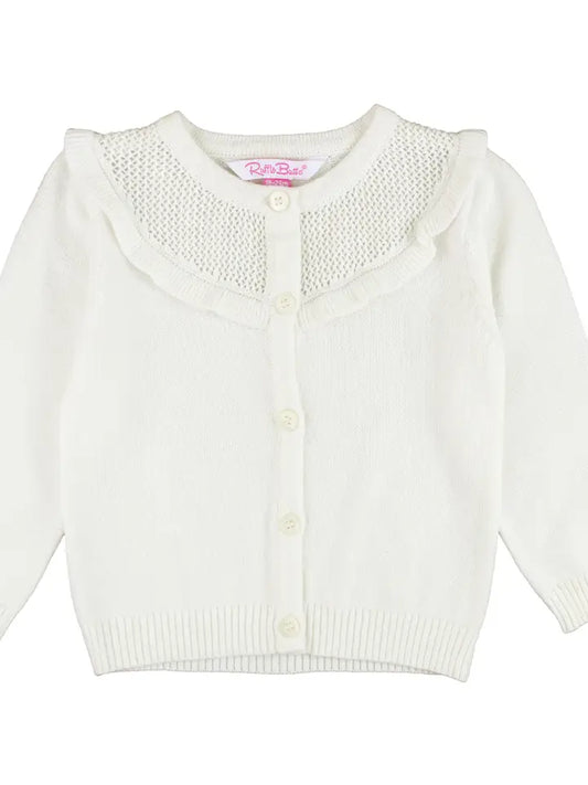 Ruffle Butts Girls Off-White Sweater Knit Ruffle Trim Cardigan