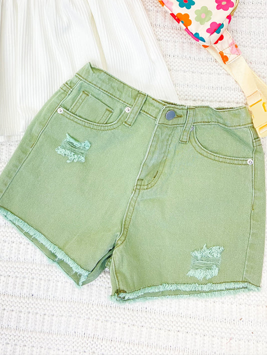 Youth Girls Stonewash Distressed Denim Shorts