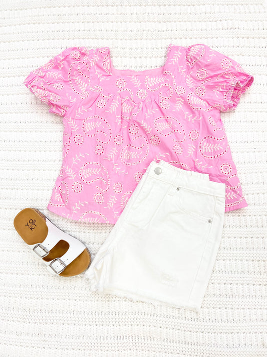 Youth Girls Botanical Embroidered Top