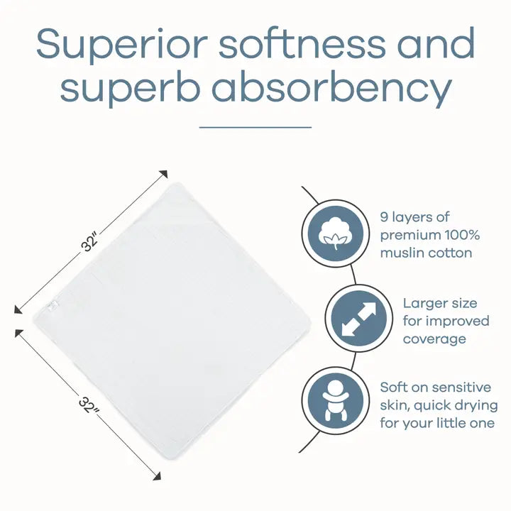 ⚫ Larger Size for Better Coverage – Comfy Cubs muslin cotton hooded towels are a bigger 32” x 32” in size which helps support newborn infants and growing toddlers, so they can enjoy better coverage from their heads to their little bottoms.