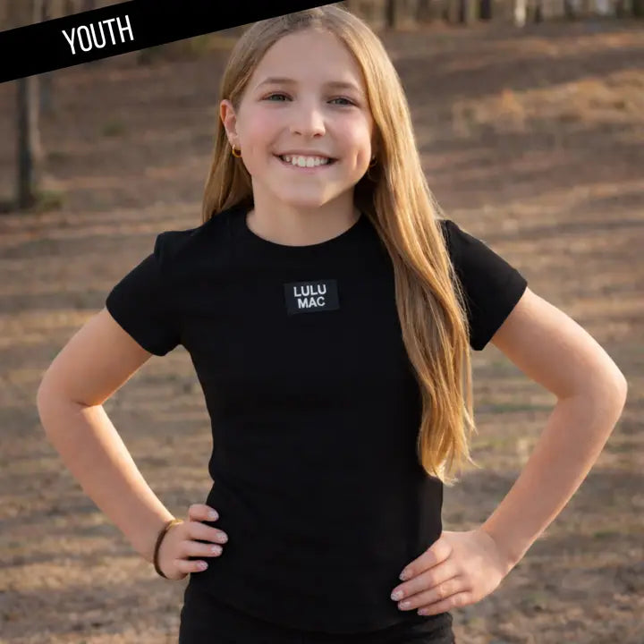 - Made with soft, stretchy fabric and finished with an adorable Lulu Mac patch, this fitted tee is a must have for everyday outfits.