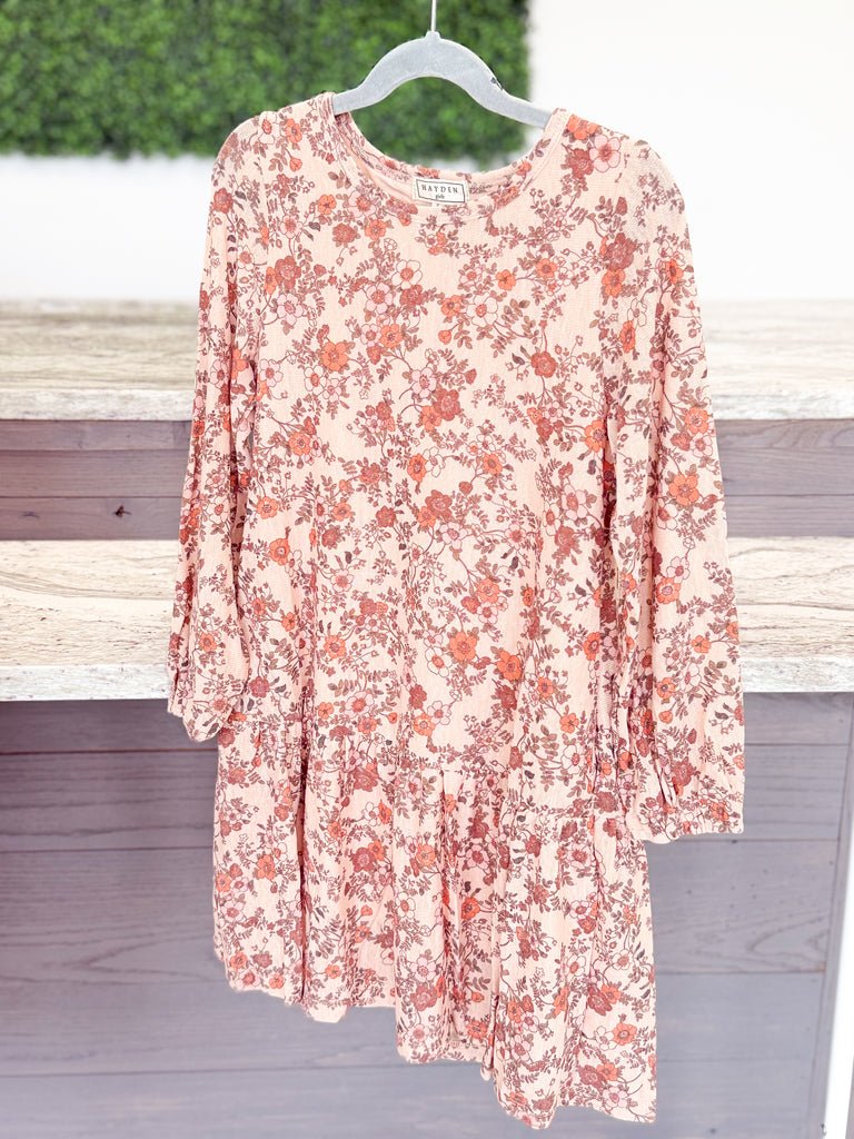 Youth Girls Antique Floral Drop Waist Knit Dress