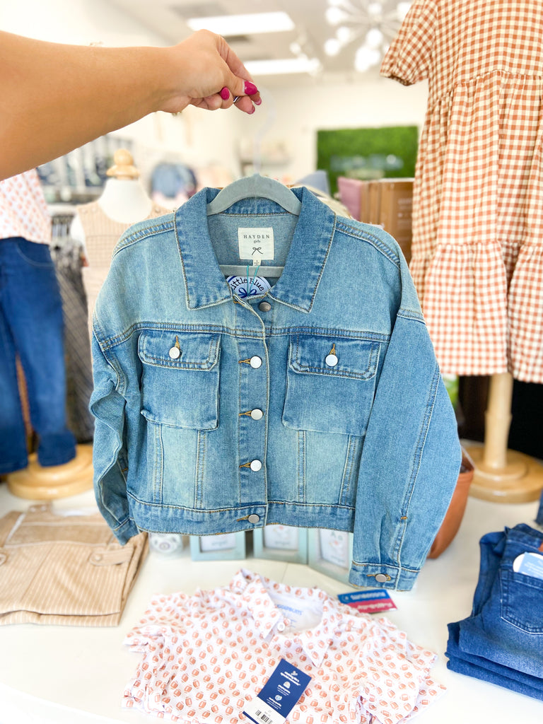 Youth Girls Cargo Pocket Washed Denim Jacket