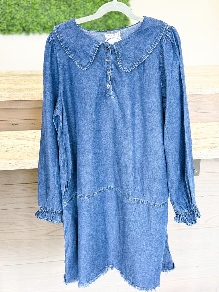 Youth Girls Peter Pan Collared Cinch Cuff Chambray Dress