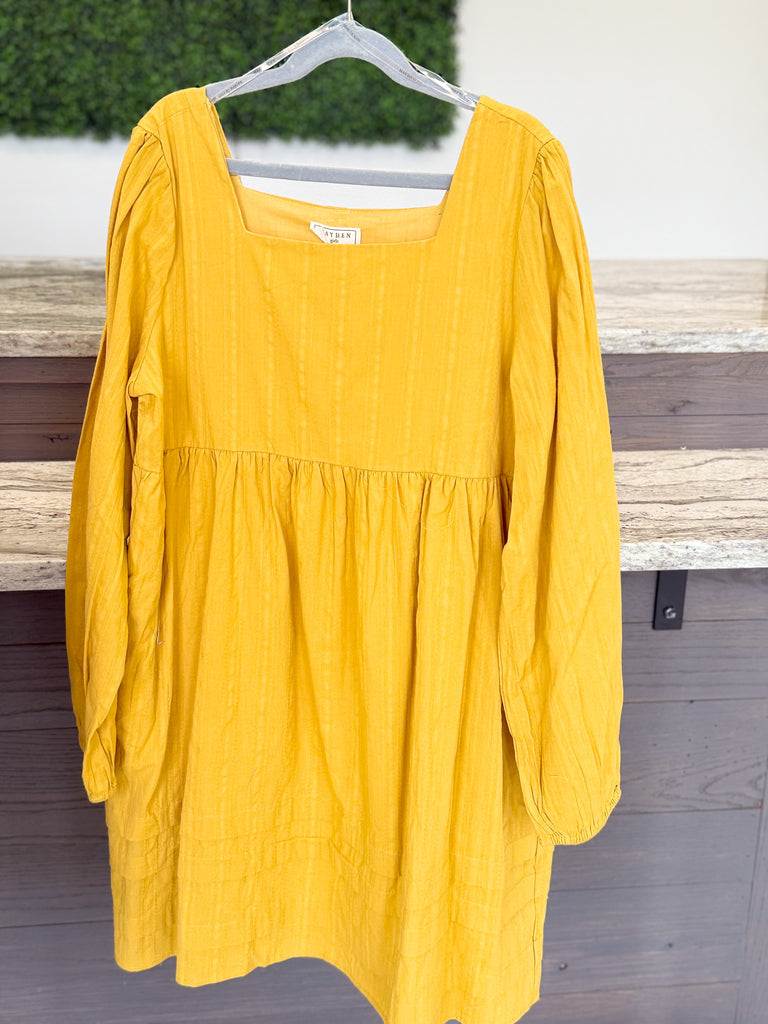 Youth Girls Square Neck Textured Stripe Pleat Detail Dress