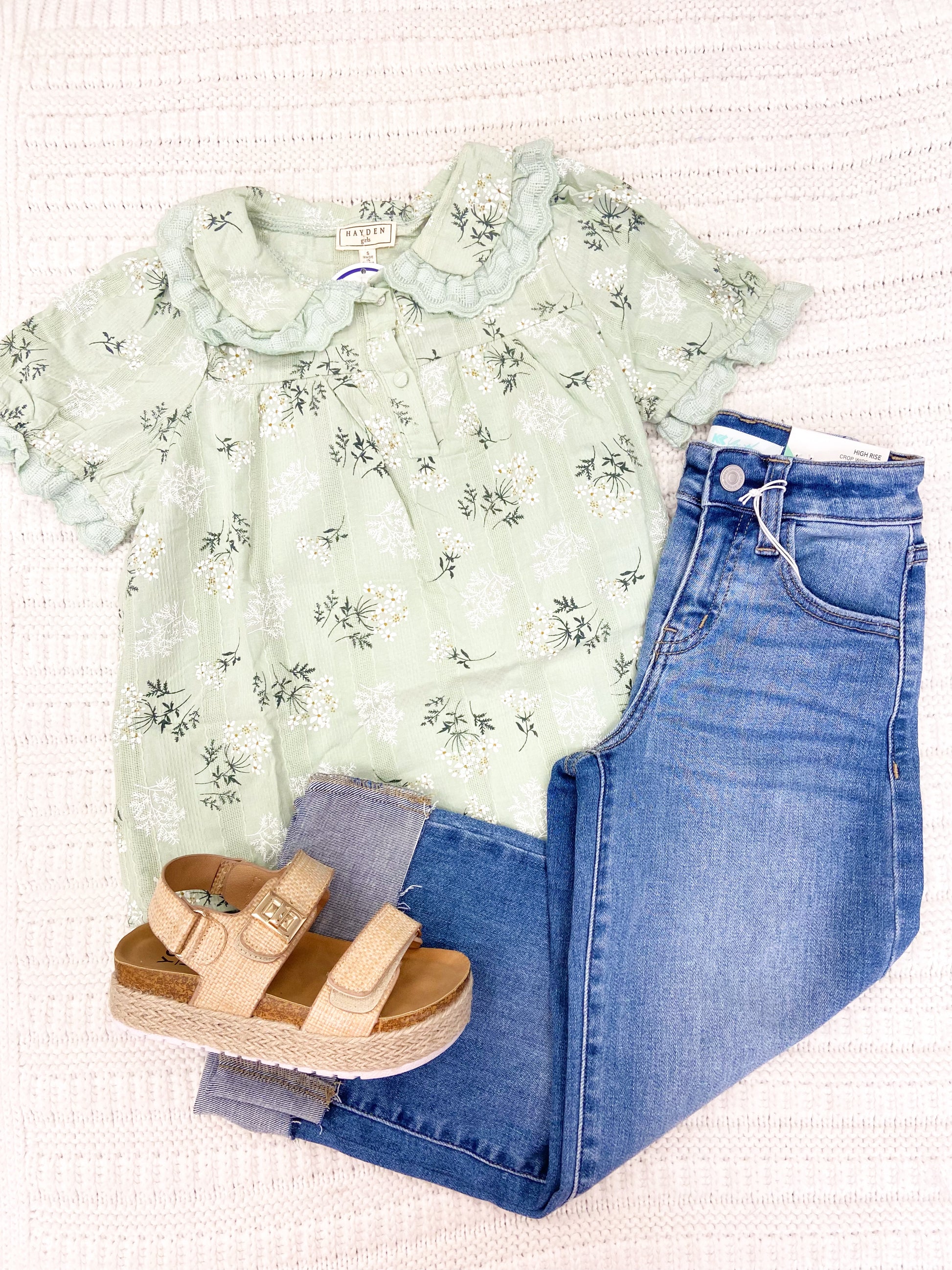 Youth Girls Textured Floral Lace Peter Pan Collar Top